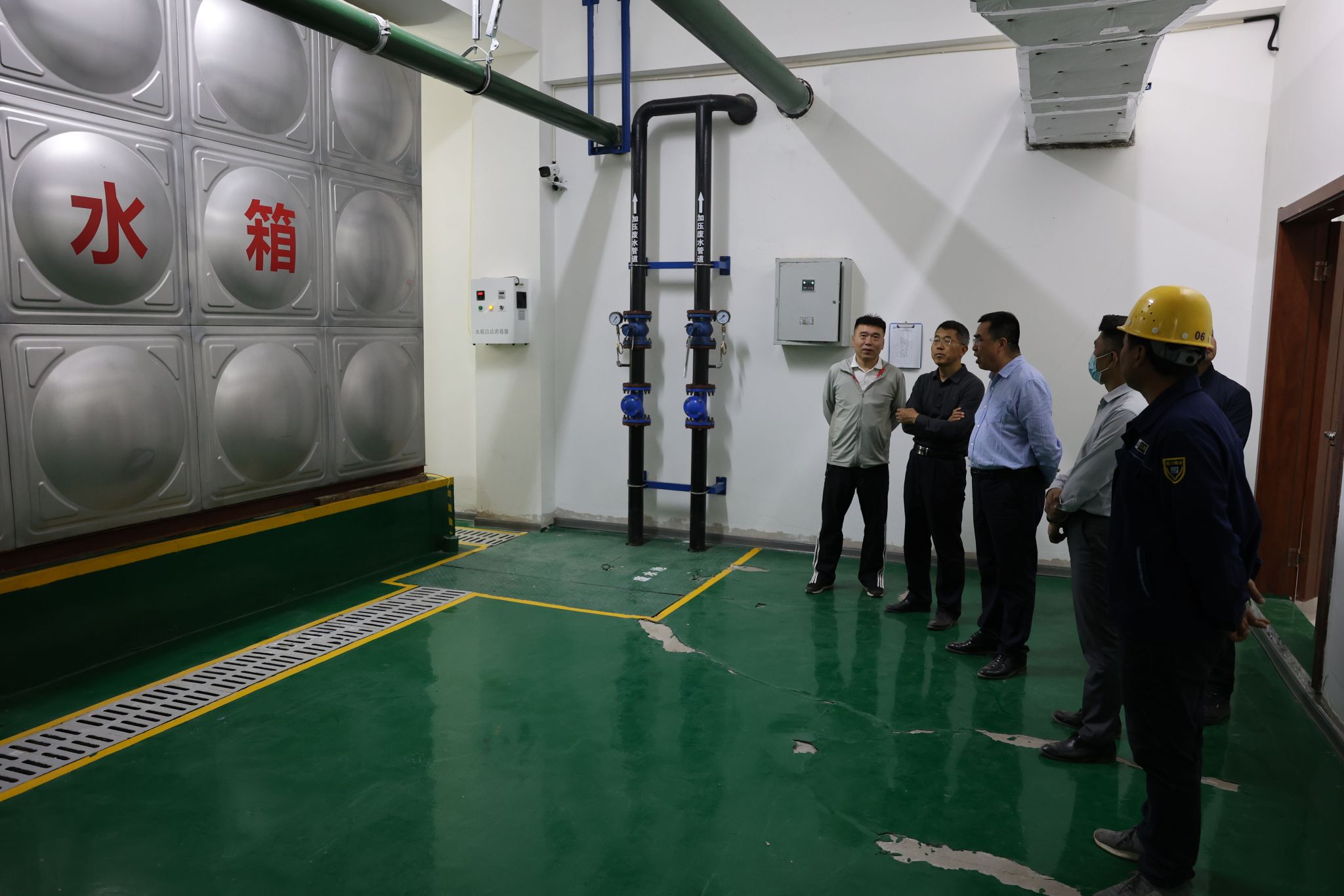 校领导一行先后查看了含光校区4号学生公寓消防施工现场、正在实施危楼加固的部分楼宇和鄠邑校区综合训练馆、人防工程等,并对鄠邑校区动力中心的消防水泵、生活用水、供电供气设备及假期值班值守情况进行了深入检查。